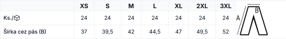 Tabuľka veľkostí pracovných nohavíc Urgent: